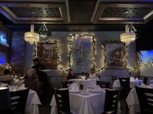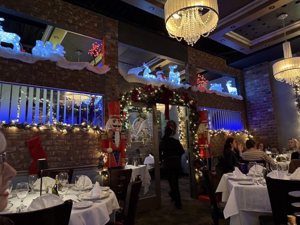 Joanne and I had a very nice post-Christmas dinner at our favorite restaurant, Della Francesca in Danbury, CT. An admirer of the work of 17th Century Venetian artist Piero Della Francesca, restaurateur Johnney Rugovac of Woodbury, CT named his new restaurant Della Francesca. He added several pieces of the artist’s work to his dramatically appointed dining room enhanced with lovely glass-etched panels. At Christmas time, Johnny and his team go all out with decorations. The restaurant offers a Northern Italian Menu.​​​​​​​​​ After immigrating to the United States from Yugoslavia in 1978 when he was 14, Mr. Rugovac worked in high-end restaurants in Manhattan.