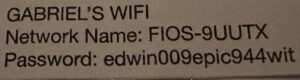 This one takes the cake. Gabriel’s Restaurant has great food but the owner established the worst Wi-Fi authentication credentials I have ever seen. Seems he wants to make things as difficult as possible for his customers.