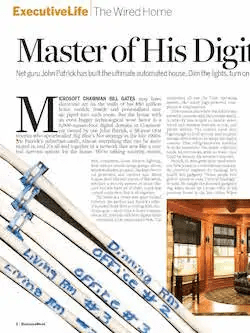 Microsoft (MSFT) chairman Bill Gates may have electronic art on the walls of his $50 million home outside Seattle and personalized music piped into each room. But a house with an even bigger technological wow factor is the 6,000-square-foot digital domain in Connecticut owned by one John Patrick, a 38-year IBM (IBM) veteran who spearheaded Big Blue’s Net strategy in the late 1990s.