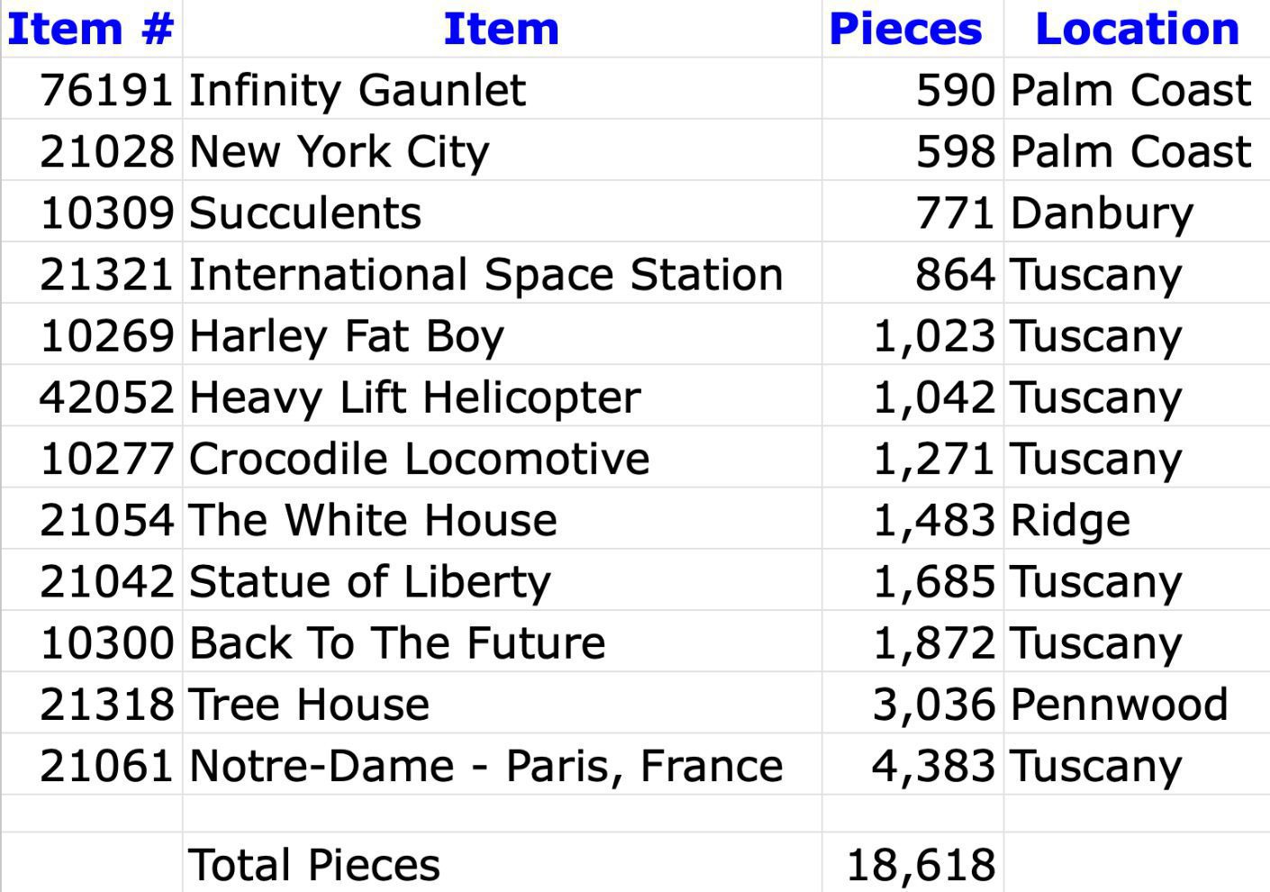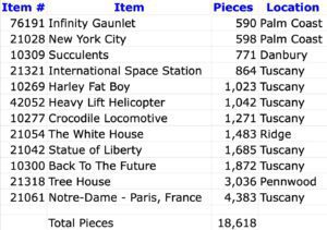 Lego update. Finally finished the Back to the Future build. It has less than half the number of pieces (1,872) then Notre Dame (4,383) but has much more complexity. Following are some pics.