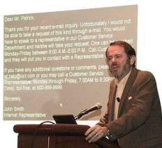 According to John Patrick, VP Internet Technology at IBM, only 4-5% of the Internet’s potential is being used. There is a growing gap between consumers’ expectations and what they get. Compare the convenience of generating postage bar codes via the Internet vs. archaic online service centers that require you to print and fax forms back to them during normal business hours for processing in weeks. We can close the gap with technology and attitude. Issue: application integration. Ask the kids: Instant messaging is preferred way to communicate online, yet MNC’s prefer the “old way” with snail mail, fax machines, and 9-5 hours of operation.